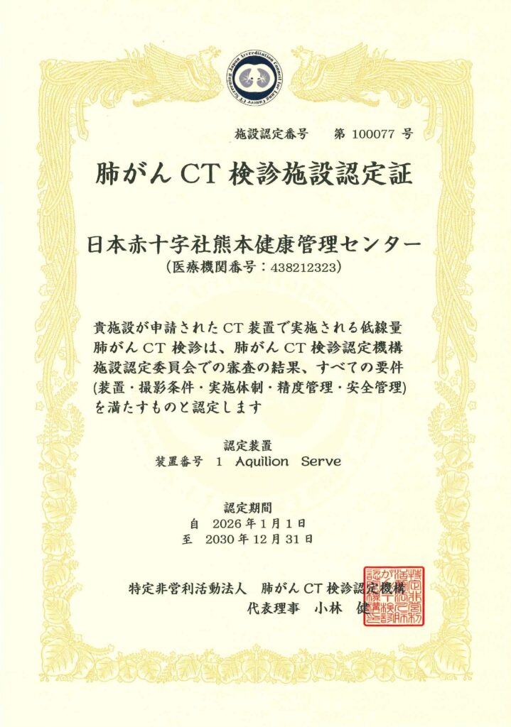 当センターは2026年1月より、「肺がんCT検診認定施設」として正式に認定されました。